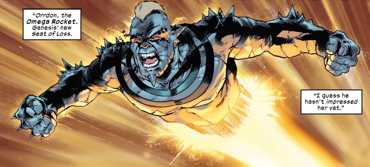 Orrdon could launch himself like a rocket, infinitely accelerating until he hit something. The further he goes, the more powerful his impact is. Orrdon claims that he’s invulnerable while he’s accelerating. A deadly mutant, unless you’re in a small room.