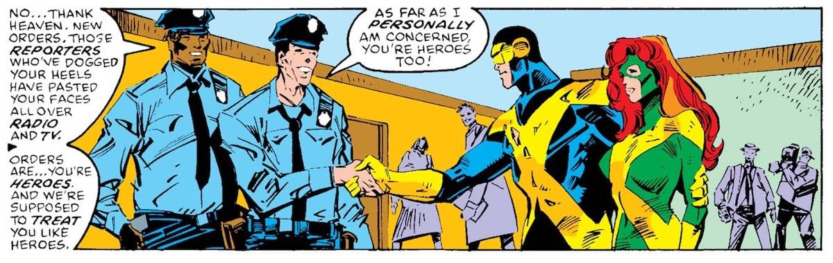 The solution, via ‘Fall of the Mutants,’ was to reposition the mutant groups inside the Marvel Universe as obvious heroes: in X-Factor, the group would publicly save New York City from destruction and be adopted as heroes by the city, while Uncanny X-Men would feature the outcast team literally sacrifice their lives in Dallas in a nationally televised event to save reality itself. (They were fine, don’t worry; their death was a magical feint, and they were reborn in Australia without the world knowing, because comics.) The New Mutants storyline, while darker — one of the team is killed — nonetheless ends with the characters choosing to become superheroes and fight evil.