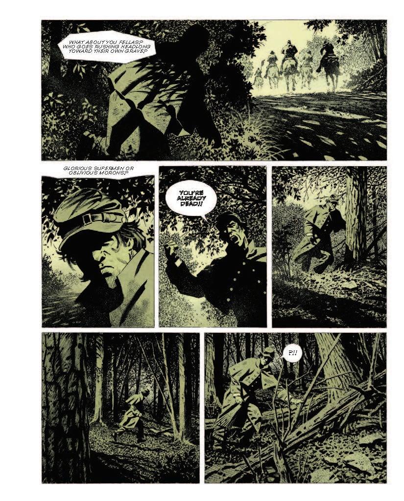 Ahead of its May 13 release, Popverse has an exclusive look at one atmospheric sequence from the book, showcasing Cuzor’s timeless work bringing the classic to comics, and giving new life to Crane’s unforgiving look at the realities of war, as opposed to the adventure literature of the era that tended to glorify such stories. (The book would be reprinted multiple times during the First World War, as the rest of the world sadly caught up to what Crane was trying to do with this release.)