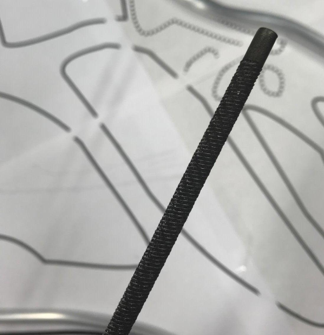 To prepare for welding, the first step is making sure the connection of both aluminum rods is flush. This makes for a stronger weld. I used a rounded grating tool to shave the tip of my smaller rod to a concave shape that fit perfectly around the edge of the side of my larger adjoining rod.
