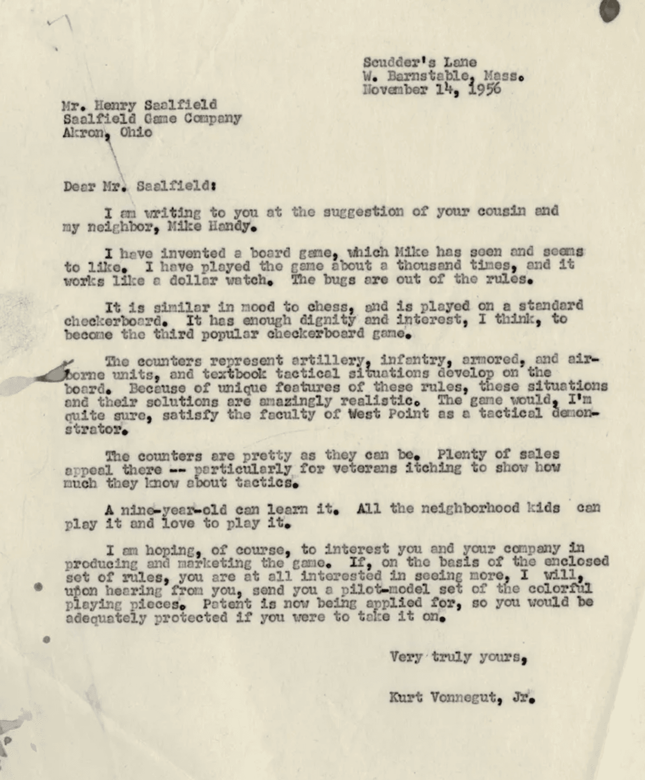There's no evidence for this, but just my feelings about it is are: He was in the war, from like 1944-45. Slaughterhouse-Five came out in 1965, and this game is 1955-56. It’s right smack in the middle. I think he was on a journey in terms of internalizing or coming to grips with how he processed his war experiences.