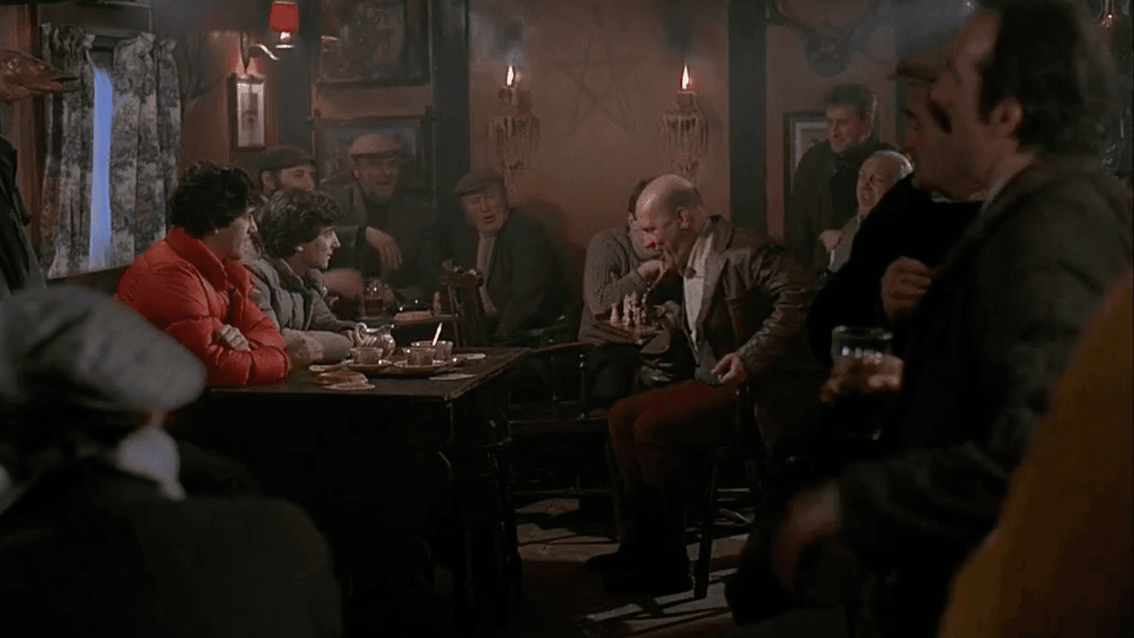 Speaking of folks that are wise to the truth, let's talk about those English folks at the wonderful Slaughtered Lamb pub. Those are the older blokes (and one lass) that speak to Jack and David after they come into the pub to escape the elements, but clam up once Jack notices the pentacle on the wall. They ask the Americans to leave, despite it being night time, and it comes out that they didn't want the pair knowing the supernatural secret underneath their community.
