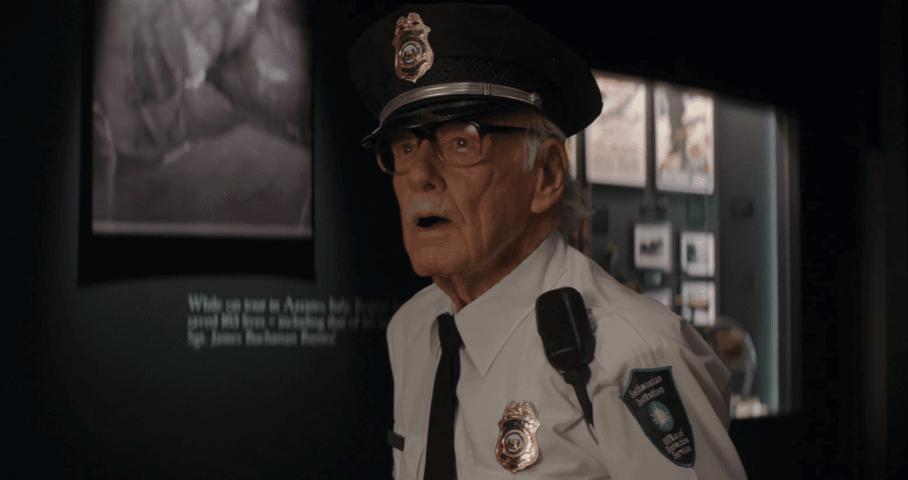 This posthumous cameo features Stan digitally de-aged to appear as he did in the 70s (the era in the time-hopping movie in which his appearance takes place) alongside a digital recreation of his de-aged wife, Joan.