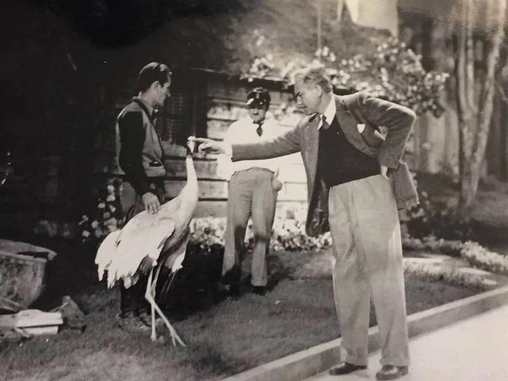 However, there is no truth to these rumors. First off, the Munchkin sequence wasn’t filmed until after the Tin Man’s introduction, so none of the Munchkin actors had arrived to set yet. In truth, the figure in the background is actually a bird. Director Victor Fleming wanted to make the forest feel more alive, so he borrowed some birds from the Los Angeles Zoo. One of the cranes expanded its wings, making it appear as if a body was swaying. Remastered and cleaned up versions of the film present a clearer picture of the scene, putting the issue to bed. There’s also a photograph (pictured above) of Fleming on set with the crane, standing near the location where viewers thought they spotted the body.
